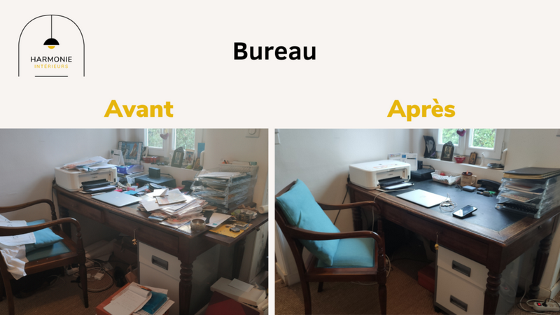 Ma cliente a choisi une prestation “Harmonie accompagnement”. J’ai ainsi pu l’accompagner dans le tri, le désencombrement, le rangement et le classement des papiers et fournitures de son bureau.